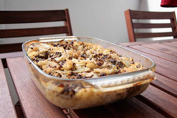 Eilen mieleen pälkähti taas kaalilaatikon valmistus, joten kauppaan matkani kävi aineksia ostamaan. Valitettavasti menin kauppaan sen verran myöhään, että naudan paistijauheliha oli loppu ja minä en muita jauhelihoja käytä. Pakon sanelemana päätin siis tänään kokkailla minulle ihan uutta versiota kaalilaatikosta eli soijarouhe-versiota. Tällä kertaa tuli taas onnistuminen ja tässäpä resepti kirjoitettuna ihan itseänikin varten. ;)