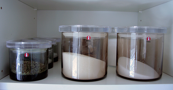Stevia-postauksessa esitelty makeutusjauhe päätyi hieman kauniimpaan purkkiin eli Iittalan Jars-nimiseen. Ihan kokonaan jauhe ei valitettavasti uuteen purkkiinsa mahtunut, joten jämät jäivät omaan purkkiinsa kaapin perukoille.